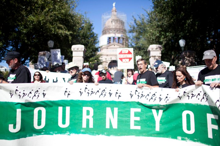 Journey of Hope…from Violence to Healing, an organization led by murder victim family members that conducts public education speaking tours and addresses alternatives to the death penalty, will be at the 18th Annual March to Abolish the Death Penalty on October 28, 2017 in Austin, Texas. Pictured above Journey members hold a banner at the march in 2011.