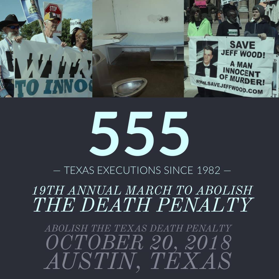 Thank you to Witness to Innocence for sending five death row exonerees to speak at the 19th Annual March to Abolish the Death Penalty. Come hear their stories at the Texas Capitol in Austin on October 20, 2018 at 2 PM.